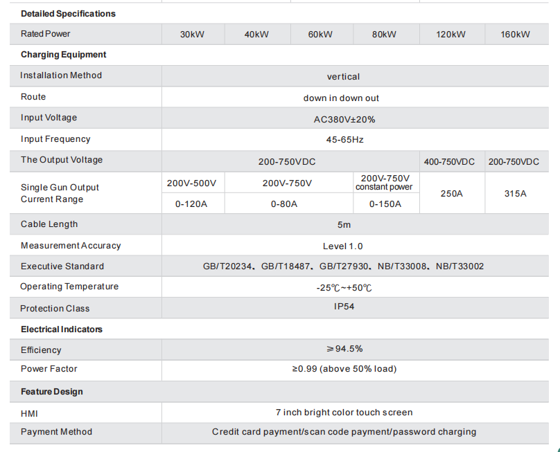 1) Charger Station Power Range: 30KW ~ 160KW.